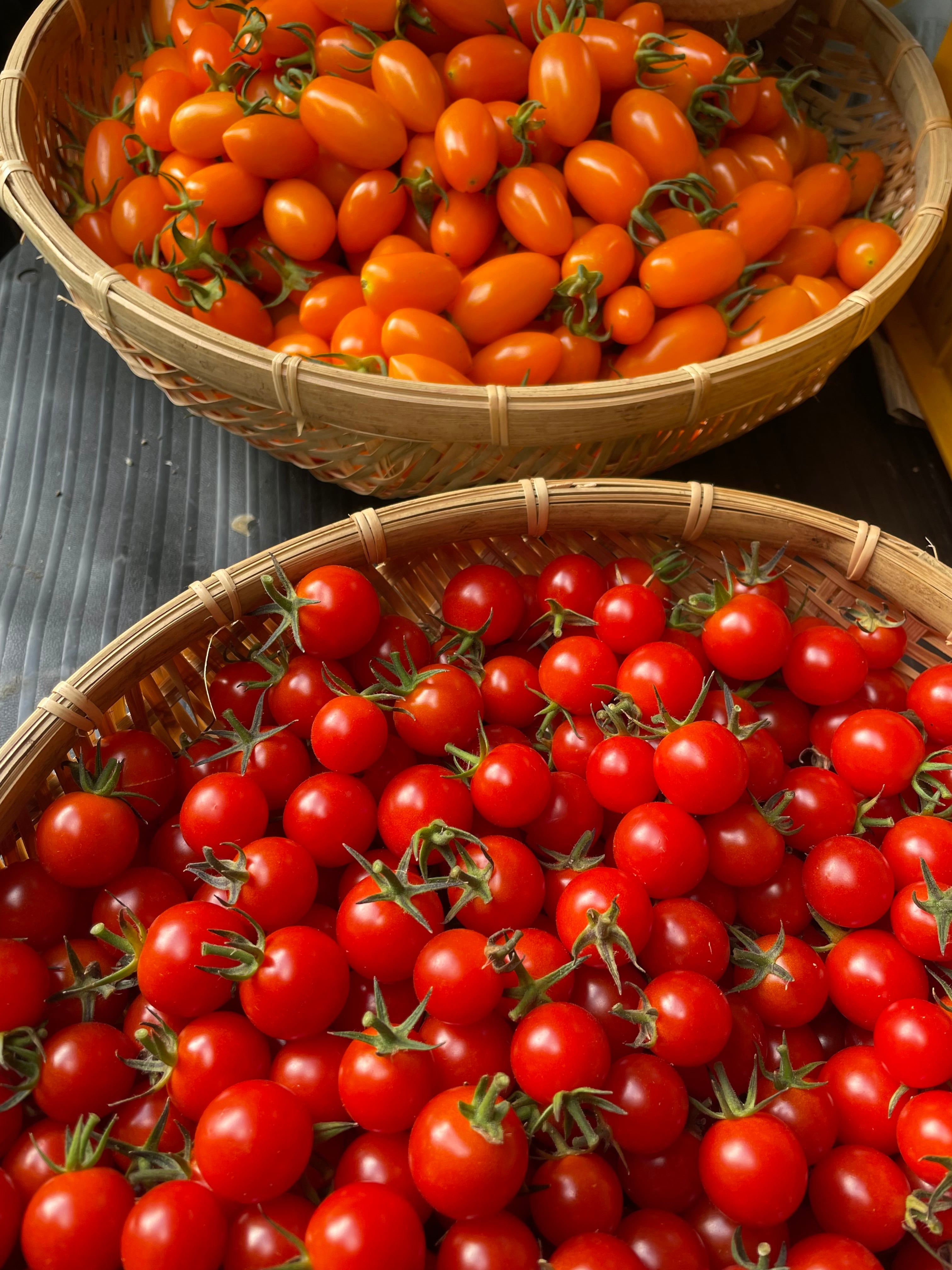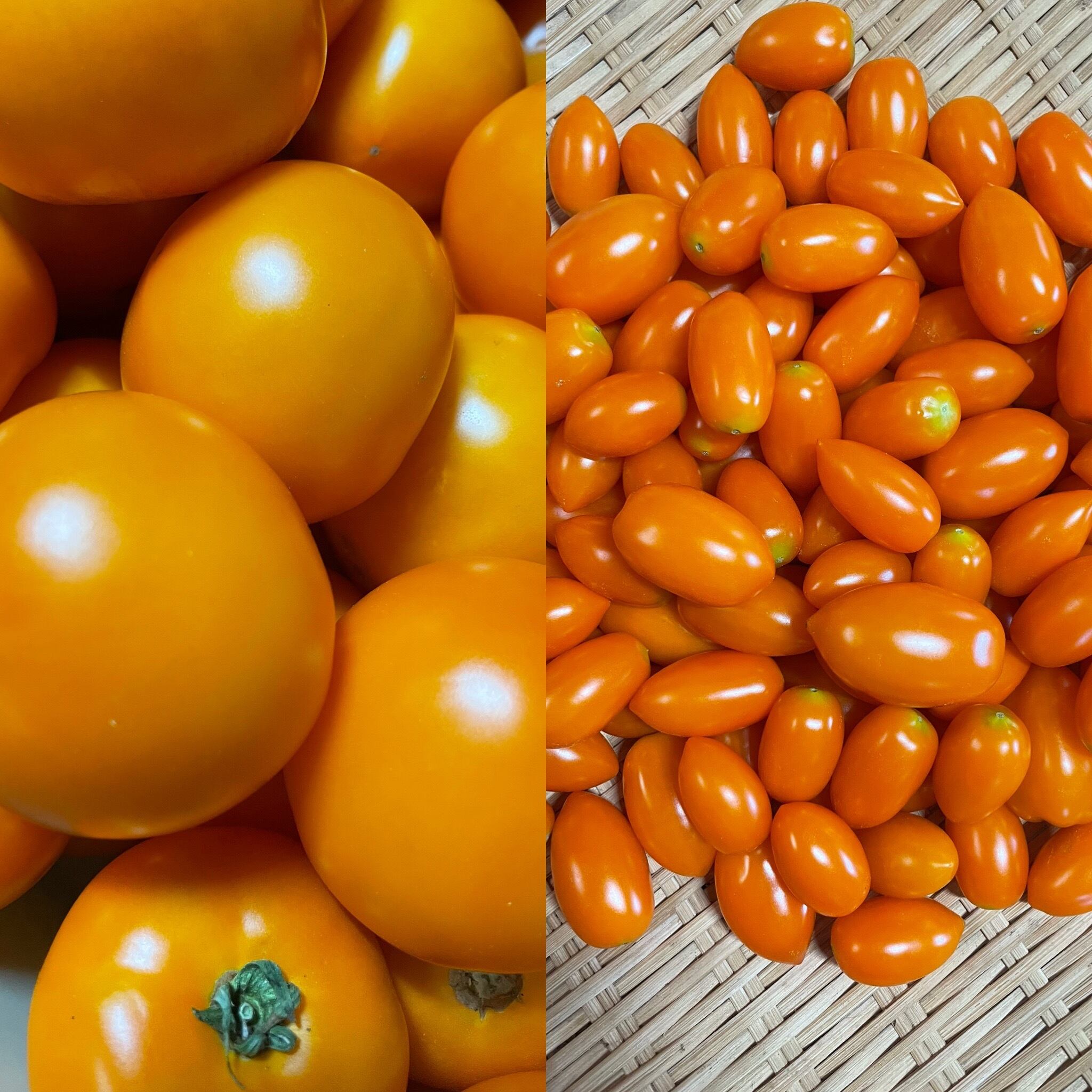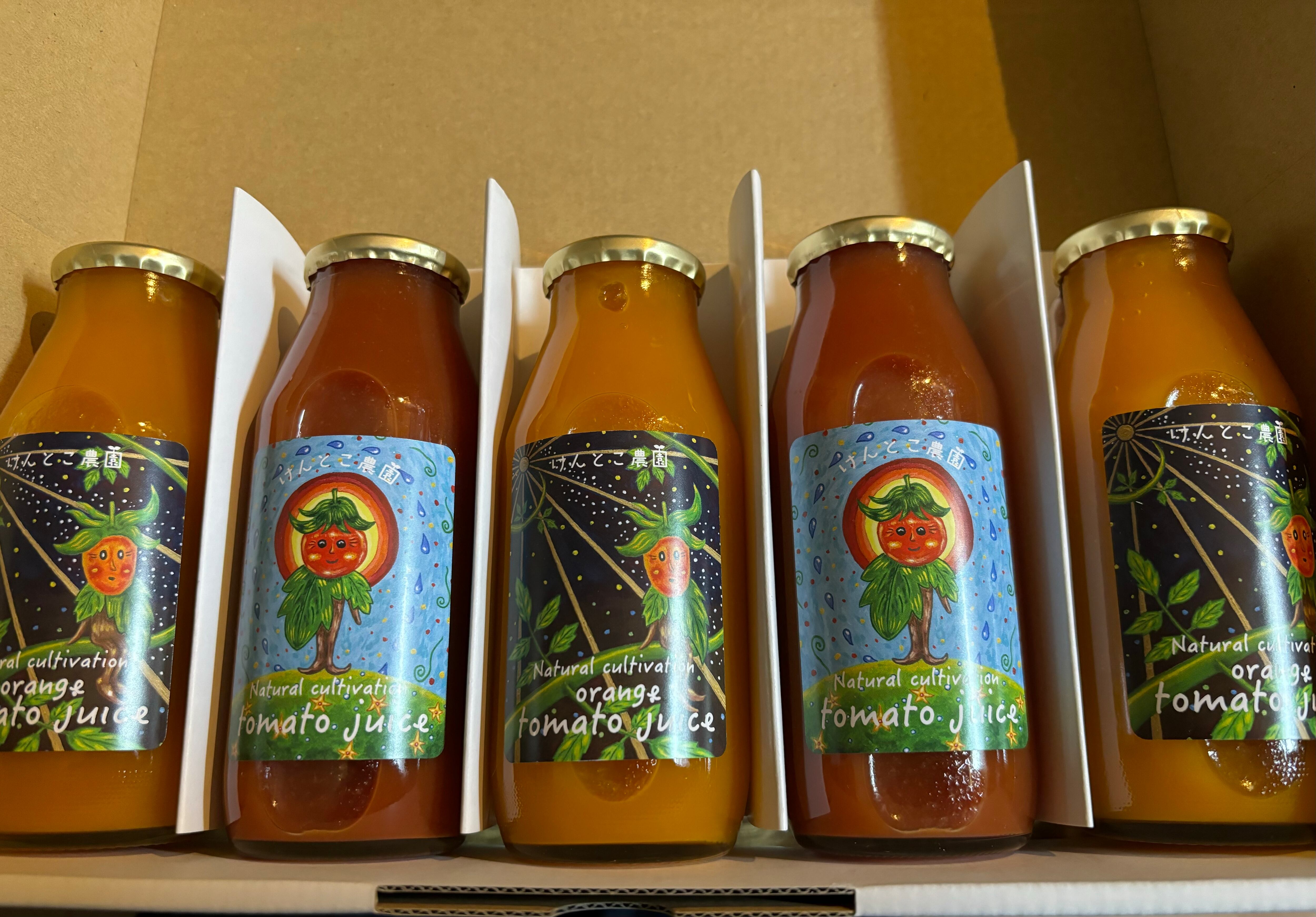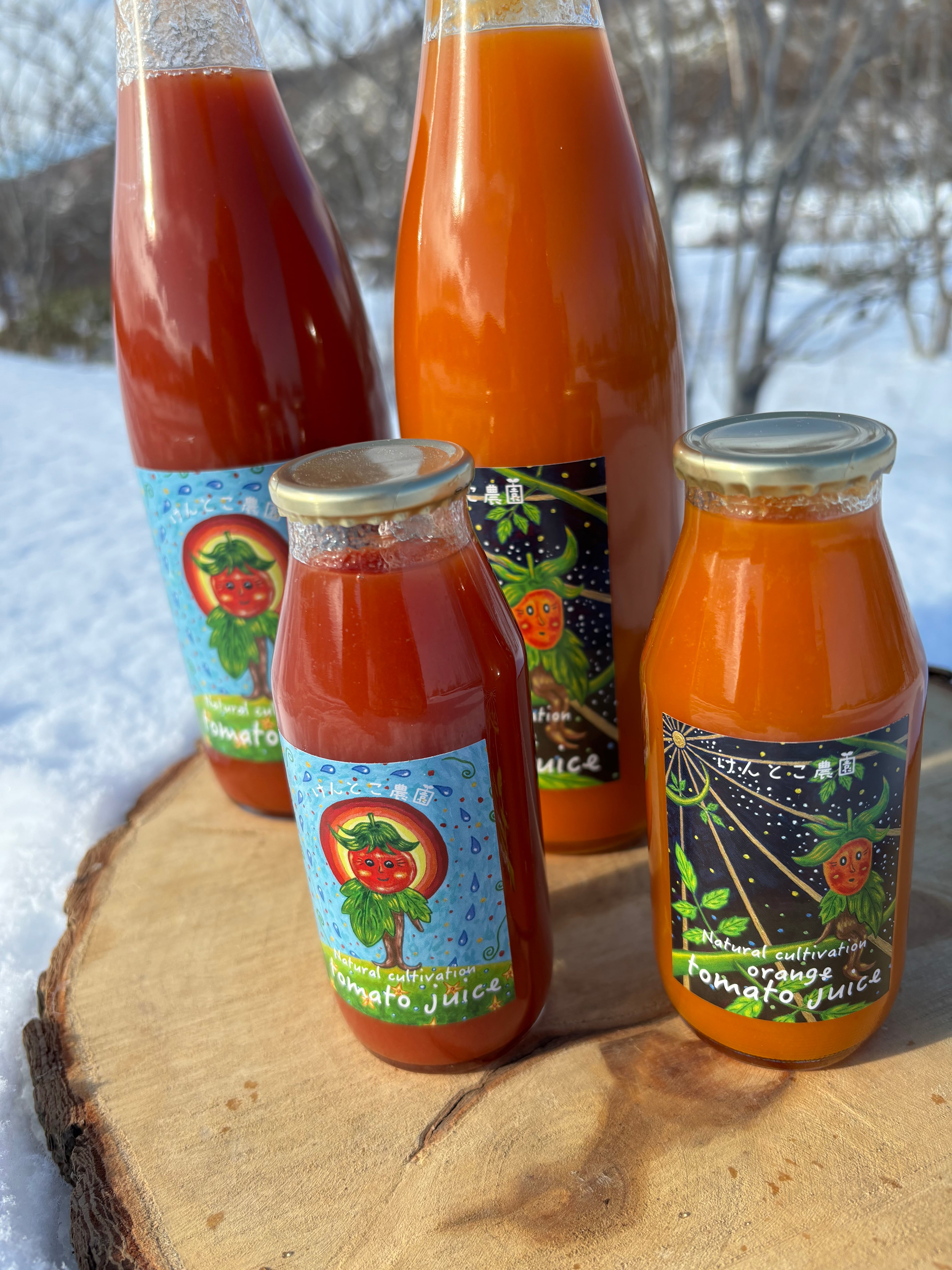自然栽培トマト(大玉・中玉・ミニミックス)のみで作った赤・オレンジ2色のトマトジュースセットです。
